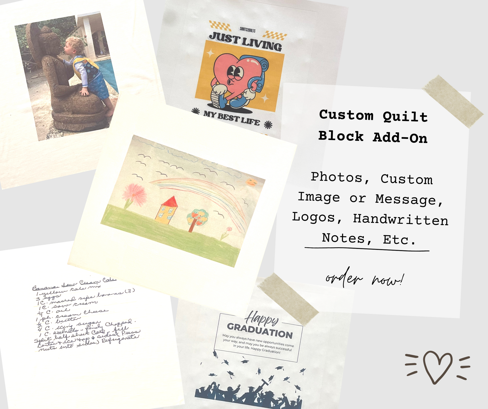Custom Printed Quilt Block Add On, Sublimation Print, Photos Printed on Fabric, Handwritten Notes, Custom Message added on to your Quilt.