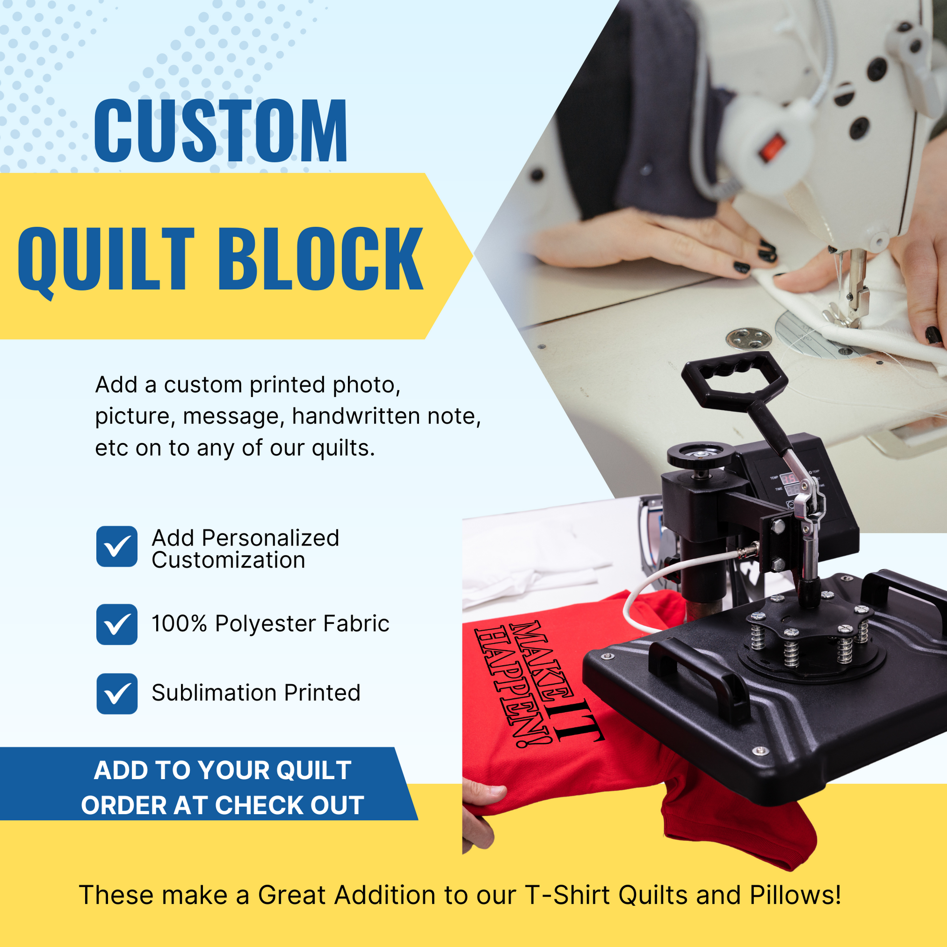 Now you can add a Photo, Custom Message, Handwritten Note on to any of the quilts!