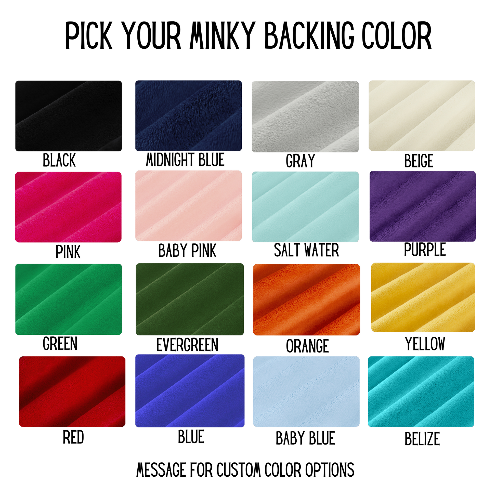 1-Go through and select your blanket backing color. We use a super soft minky fleece for the backing. This will wrap around and also be used for the edge binding so this color will be visible on the front.