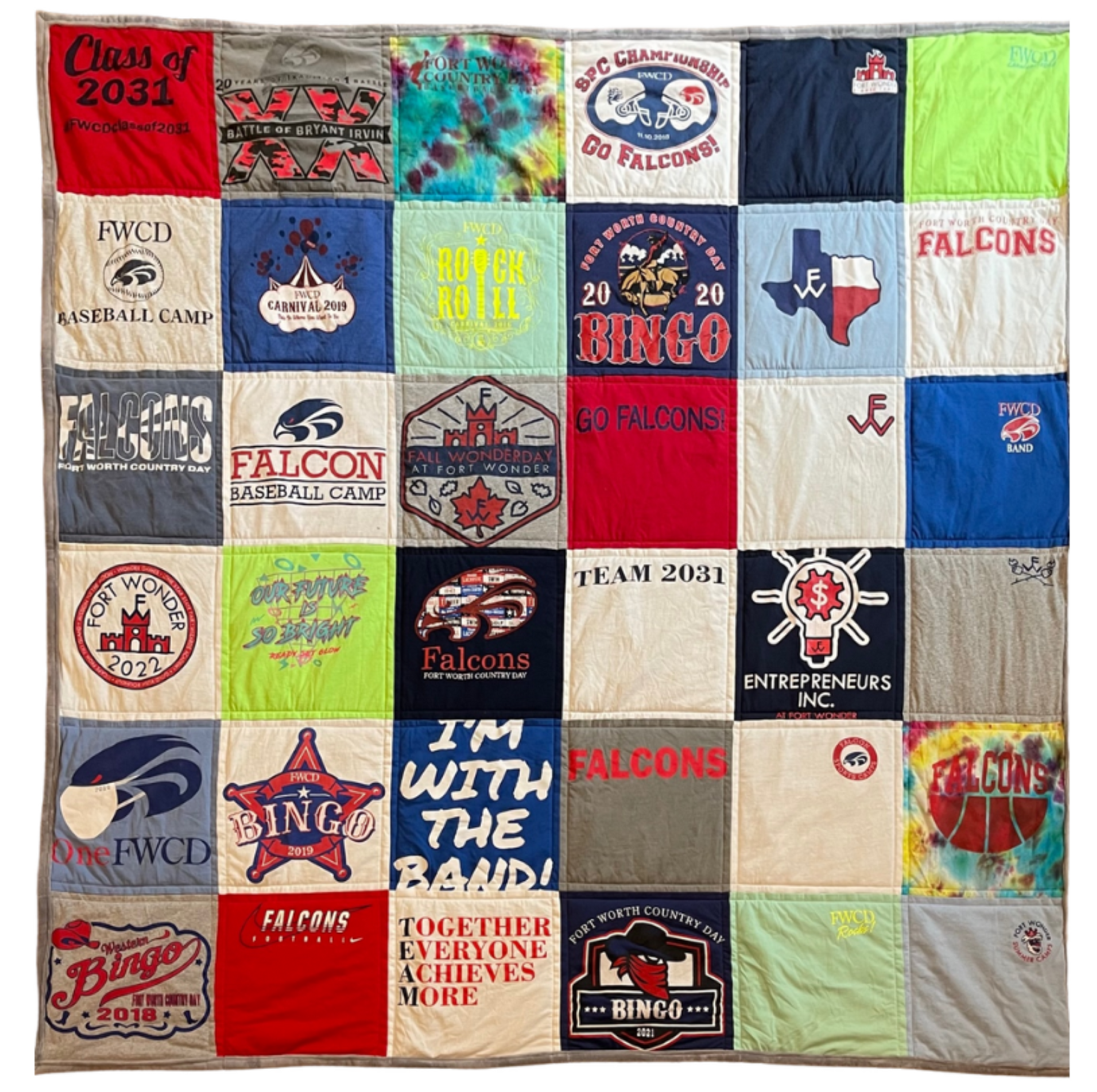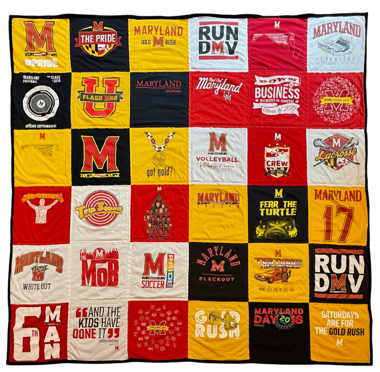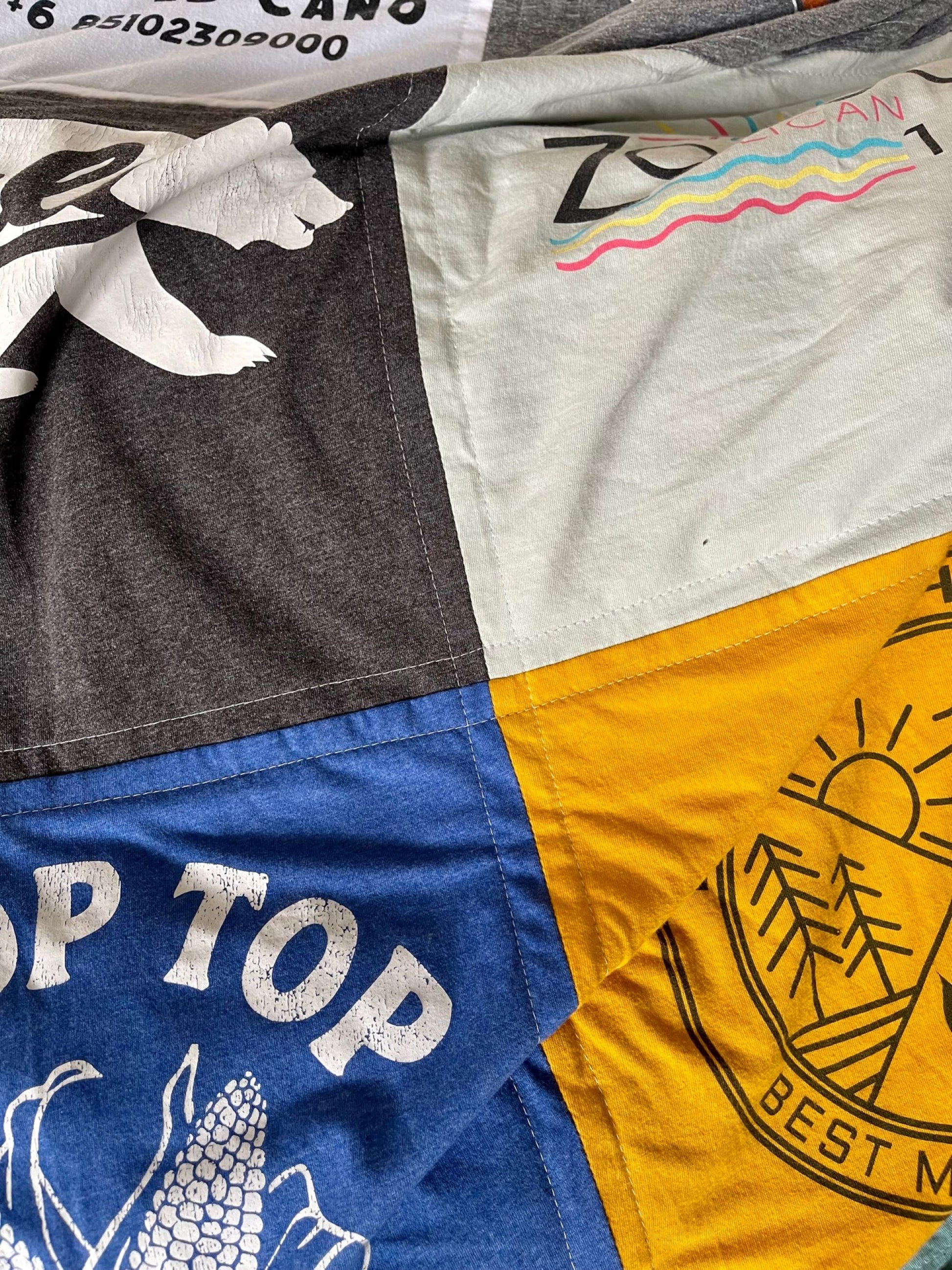 All of our T Shirt quilts are quilted adjacent to the shirt seams, we use white thread to keep your shirts the center of attention.